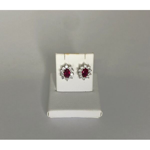 Orecchini realizzati in oro bianco 18 kt con zirconi e rubino sintetico peso 2,9 g